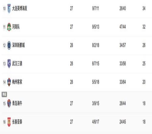 随着上述2场保级战结束,中超积分榜的保级形势基本上明朗化了!拿到2连胜的深圳新鹏城,现在积26分,领先降级区8分,基本上可以宣告保级成功!