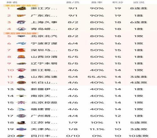 CBA最新积分榜