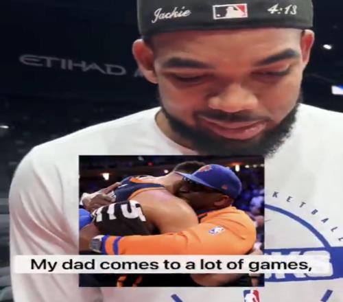 雷速体育10月4日宣 今日晚间11点,尼克斯与76人在阿布扎比所进行的季前赛将展开第二场的对决。赛前唐斯接受采访谈到自己的父亲:“我爸爸来现场看我很多比赛,你可以在这里(阿布
